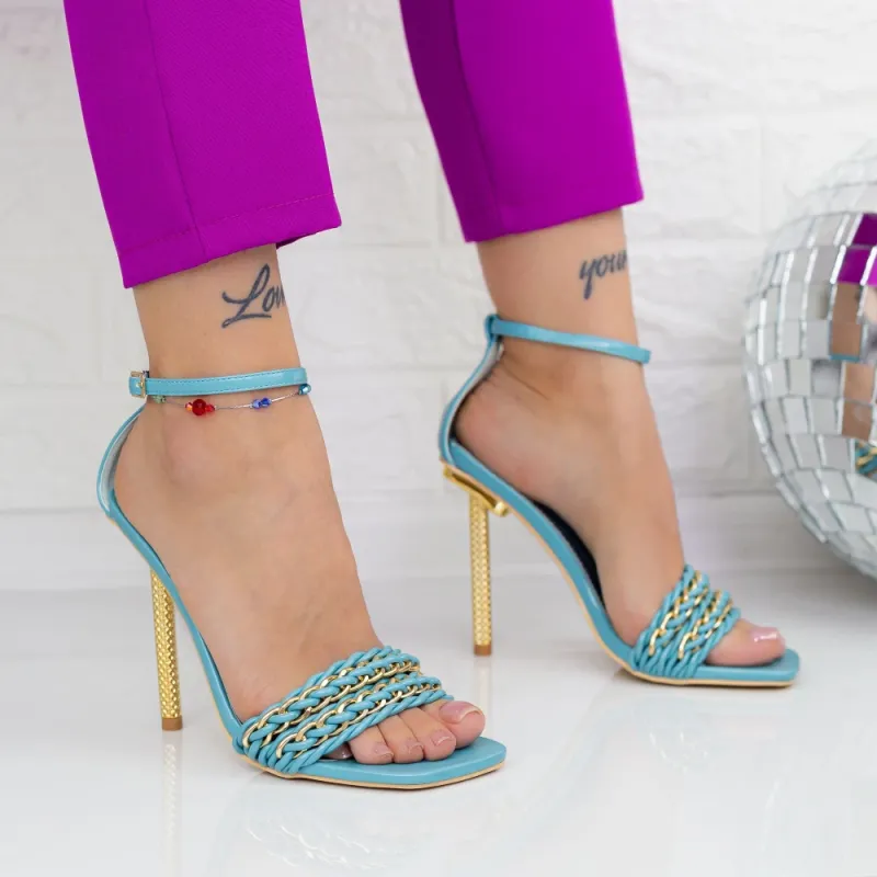 Sandale Dama cu Toc subtire VK118 Albastru Reina