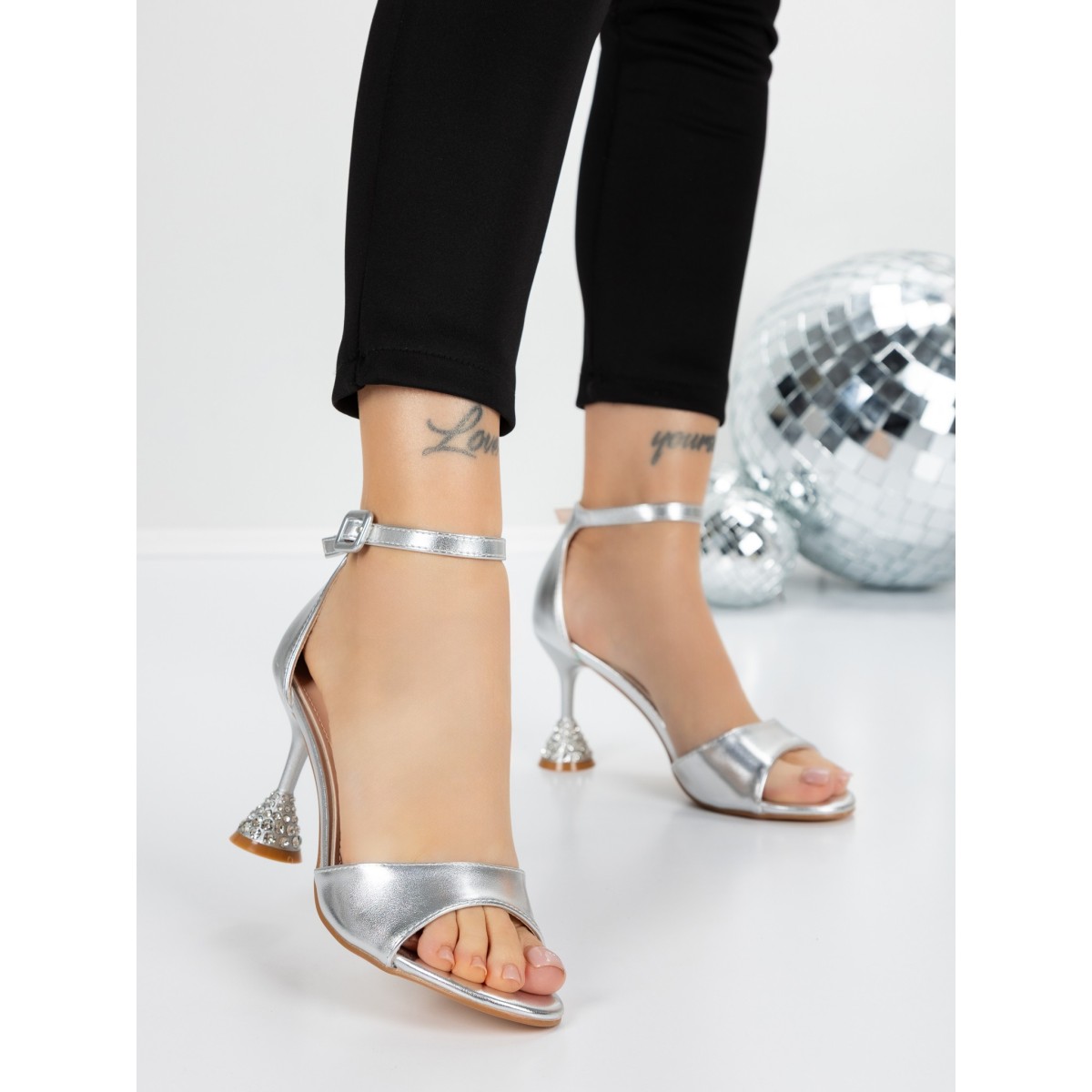 Sandale Dama cu Toc Subtire 5XKK17 Argintiu | Mei