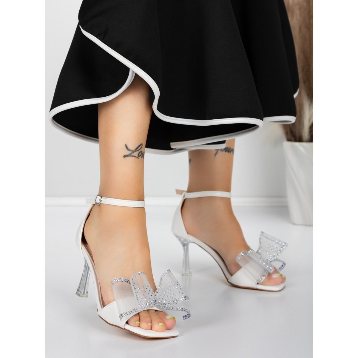 Sandale Dama cu Toc Subtire 5XKK22 WHITE | MEI