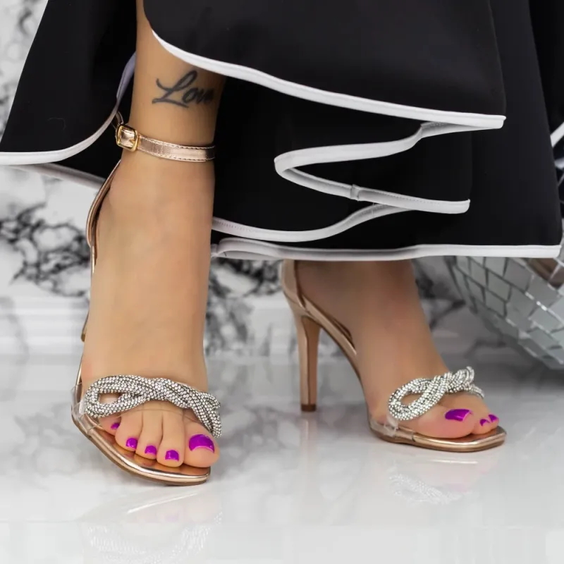 Sandale Dama cu Toc subtire KV68 Champagne Mei