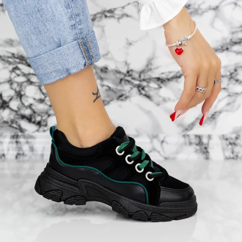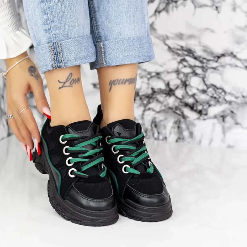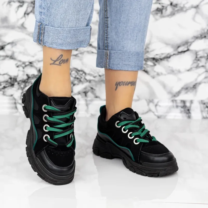 Pantofi Sport Dama 2N37 Negru-Verde Mei