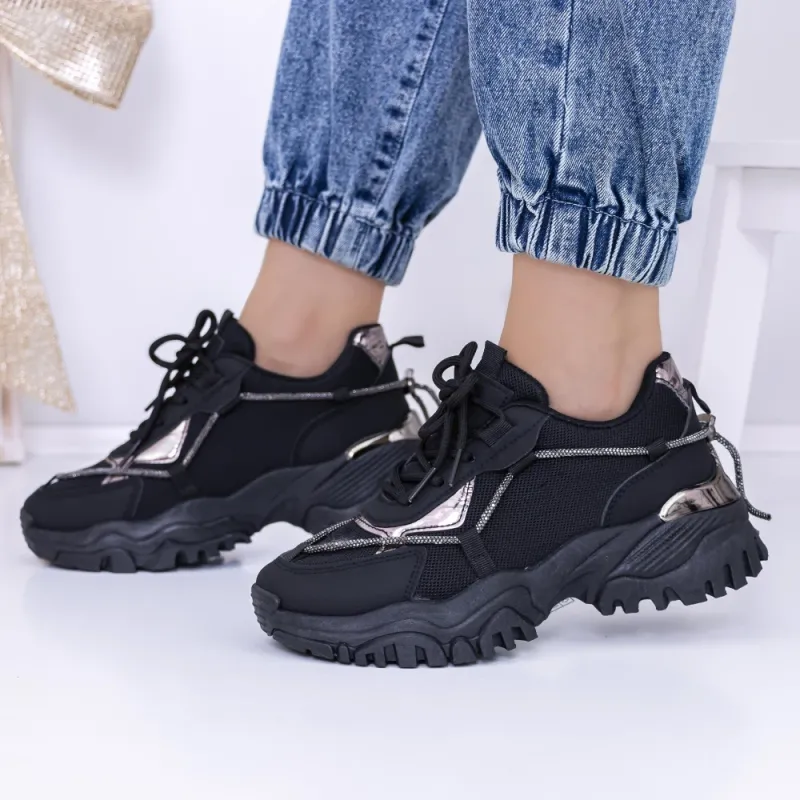 Pantofi Sport Dama 3B25 Negru-Guncolor | Reina