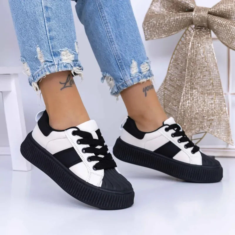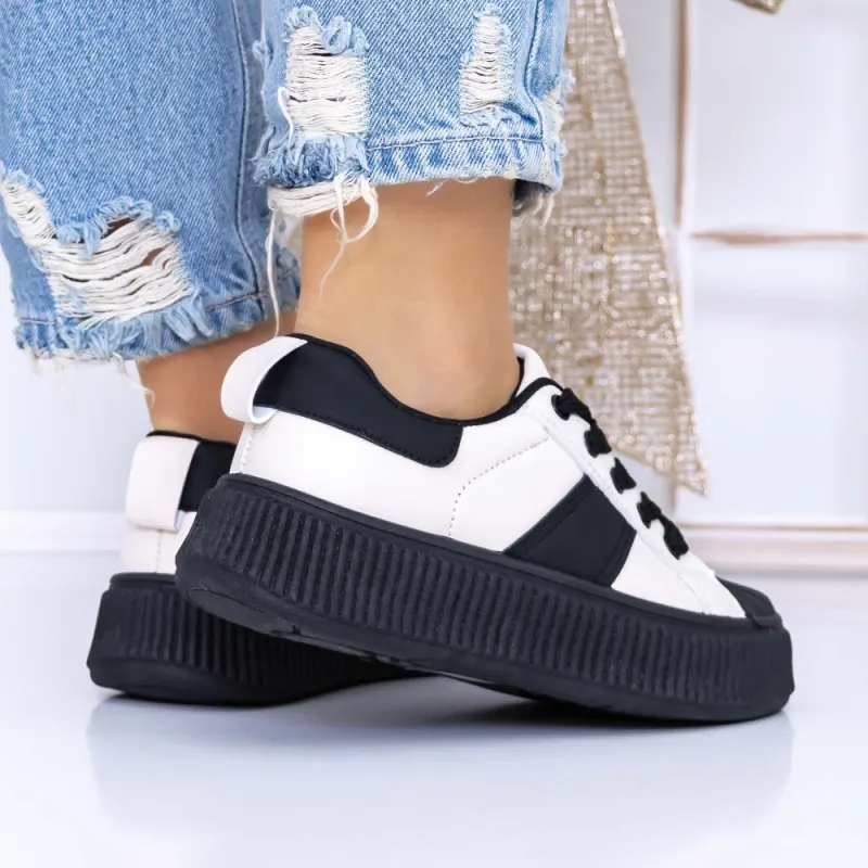 Pantofi Sport Dama 3XJ118 Alb-Negru | Reina