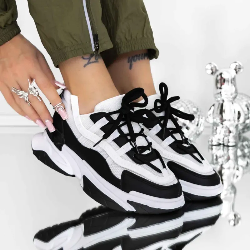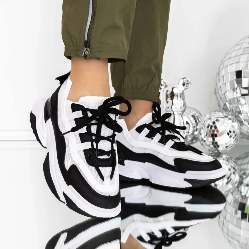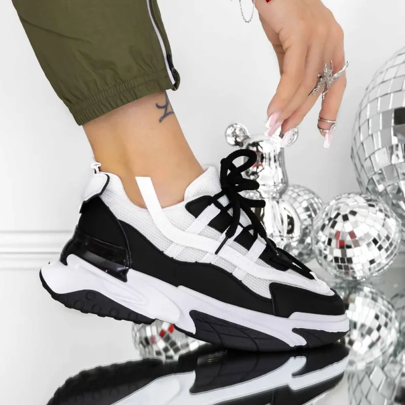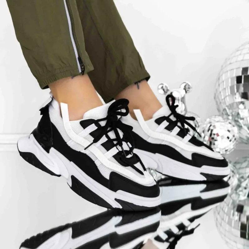 Pantofi Sport Dama 3B27 Alb-Negru | Reina
